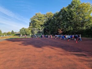 Am 2. Oktober haben wir als Schule, wie jedes Jahr, am Lauftag der AOK teilgenommen. Alle Schülerinnen und Schüler starteten ihren Lauf von 15, 30 bis 60 Minuten bei strahlendem Sonnenschein. Eine beachtenswerte Zahl von 120 Kindern liefen eine volle Stunde. Und nicht nur die Kinder…. Alle erfolgreichen Teilnehmenden bekamen in der anschließende Ehrung zusätzlich zu ihren Urkunden auch noch eine Medaille.